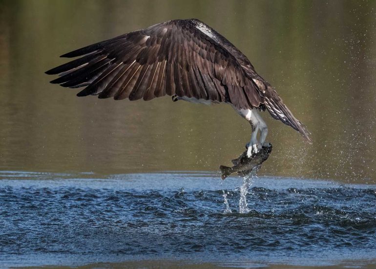 Once they’ve latched on, it’s like a steel trap; the feet of this master fisherman are no joke, and they don’t easily concede. Sometimes, a fish will be too big for this ambitious feathered warrior, and he’ll release them—but not before he leaves his mark forever on their backs. If you’ve ever seen a scar on the backs of various large trout, they’ve likely won a battle with an Osprey. On rare occasions, a larger fish can even pull an Osprey under the water and drown them.