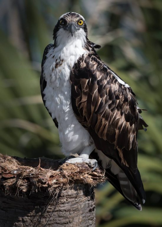 In my years photographing birds and other Florida wildlife, I’ve admired many Ospreys along the Sunshine State’s rapturous coastlines. They’re commonly seen flying near our shallow shores, patrolling inlets, and standing ever-so-gallantly on top of their large stick nests. Ospreys on the hunt are a sight to be seen, likened to what can only be described as the embodiment of perfect concentration. The next time you find yourself near shallow open water that’s swimming with lots of fish, listen for their distinctive high-pitched chirping or whistling calls overhead—it’s something to be heard, for sure!
