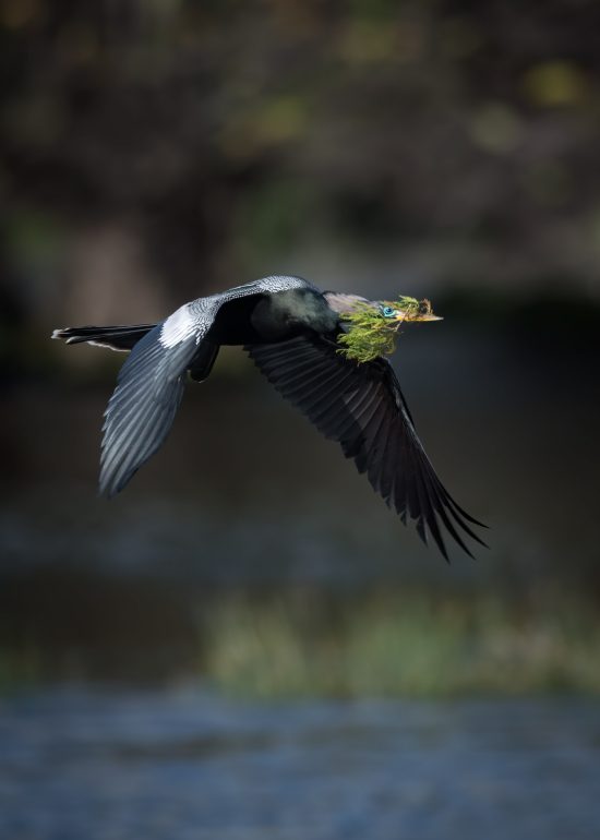 While they aren’t the fastest swimmers, they are brilliant stalkers. These avians take off by diving from the limb of a tree or by sprinting on shallow water. Unlike the Double-crested Cormorant that catches fish in its serrated beak and eats them underwater, Anhingas quickly dart and impale fish directly in the heart with their long and slightly opened daggerlike bills. Once they’ve captured prey, they typically head for land to eat, tossing the fish in the air right before swallowing it whole and headfirst, although sometimes it takes a couple tries to get it right. It sounds kind of gross I know—but it makes for the best pictures!