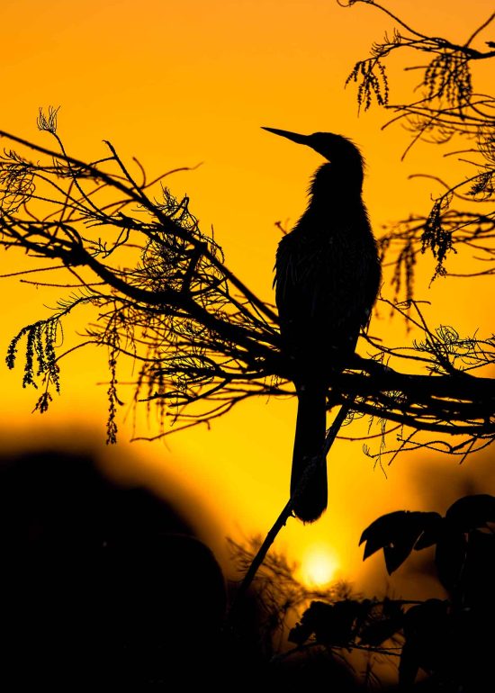 When in the water, these strategic spear fishers spend the majority of their time hunting for food. When out of the water, it’s common to find them roosting high up in nearby trees sunbathing their beautiful shimmery wing plumage. Because Anhingas don’t have a layer of feathers on their body that give them adequate insulation, they lose heat rapidly in the water. The heat from the sun is what helps them preserve and regulate their body temperature, making South Florida’s subtropical climate just what the doctor ordered.